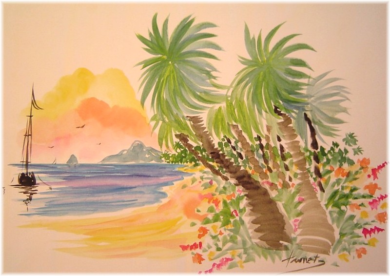 Aquarelle : Le Rocher du Diament - Marcel TRONET - Martinique - Son site : www.marceltronet.com